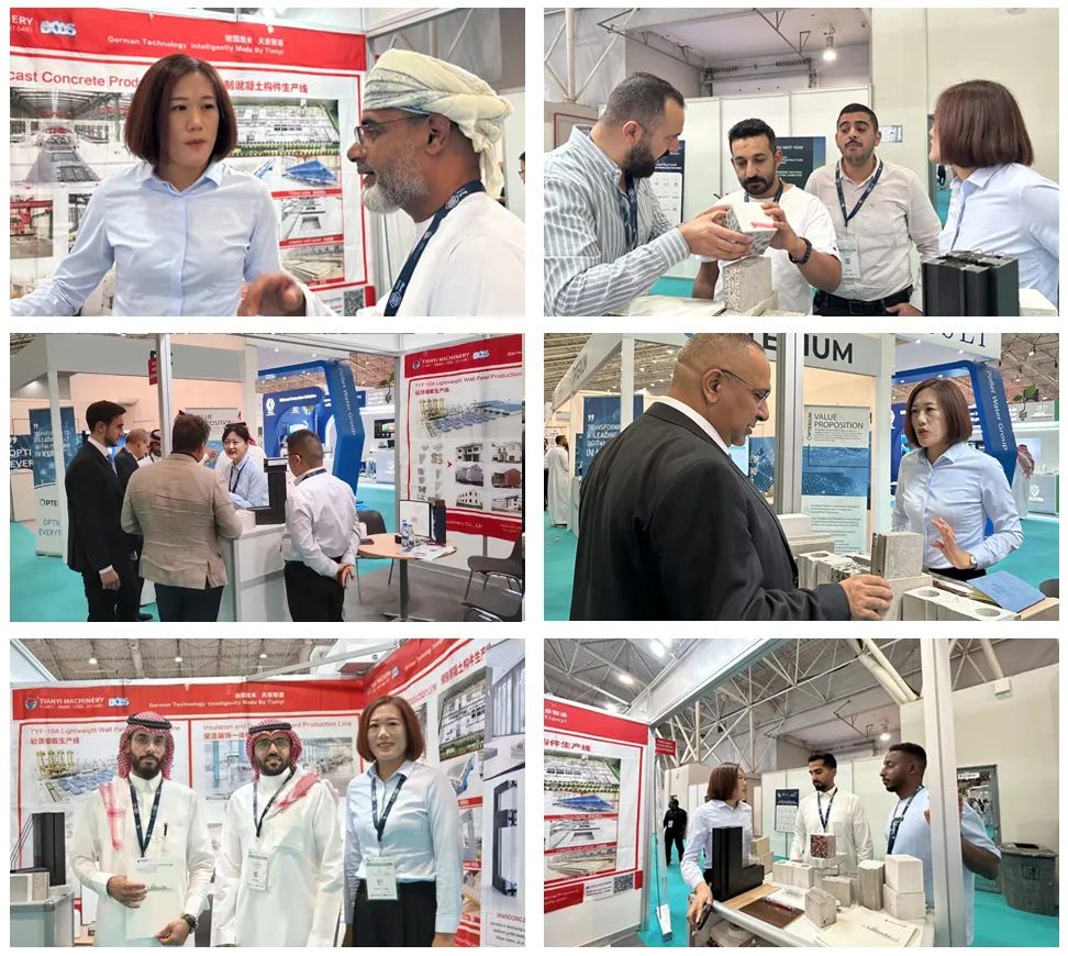 2023年沙特建筑建材及基礎(chǔ)設(shè)施展于9月11日在利雅得前沿展覽中心盛大舉辦,來自沙特阿拉伯、中國、德國、意大利、新加坡等國家的200多家公司參展,天意機(jī)械攜裝配式建筑裝備(墻板裝備、PC裝備、ALC裝備、涂裝板裝備)系列產(chǎn)品亮相展會(huì)。