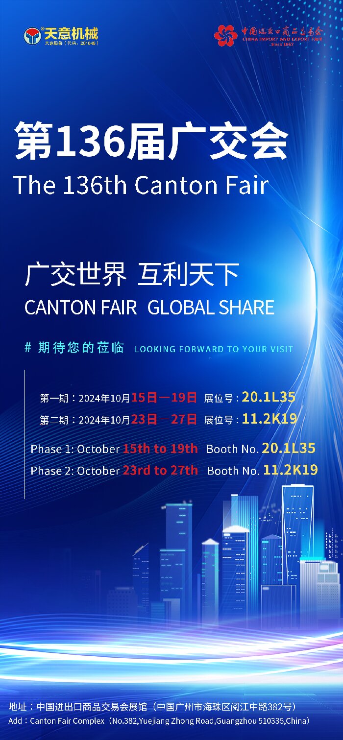 第136屆廣交會(huì)的日益臨近,天意機(jī)械已經(jīng)整裝待發(fā),期待在展會(huì)期間與全球客戶探討合作機(jī)會(huì),推動(dòng)雙方共同發(fā)展。未來,天意機(jī)械將繼續(xù)秉承“質(zhì)量第一、客戶至上”的理念,不斷提升自身的技術(shù)實(shí)力和市場競爭力,為全球客戶提供更加優(yōu)質(zhì)的產(chǎn)品和服務(wù)。