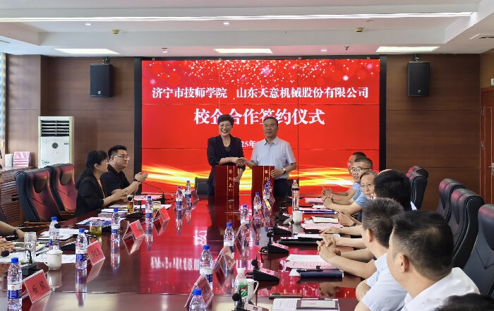 劉洪彬董事長發(fā)表了講話,他表示,企業(yè)的競爭,本質(zhì)是人才的競爭。在企業(yè)的發(fā)展中,技能型人才始終是我們最寶貴的財(cái)富。通過加強(qiáng)產(chǎn)教融合建設(shè),濟(jì)寧市技工院校為我們公司培養(yǎng)了許多專業(yè)過硬的技能型人才。退役軍人們,在部隊(duì)中鍛造的紀(jì)律意識(shí)、抗壓能力和團(tuán)隊(duì)協(xié)作精神,正是現(xiàn)代企業(yè)所急需的人才。許多退役軍人同事已在設(shè)備調(diào)試、售后服務(wù)、生產(chǎn)管理等關(guān)鍵崗位上,成長為企業(yè)的中堅(jiān)力量。作為扎根濟(jì)寧20年的本土企業(yè),山東天意機(jī)械股份有限公司成立于1998年,是以裝配式建筑裝備研發(fā)、制造為主導(dǎo),同時(shí)涵蓋鋁合金型材生產(chǎn)、機(jī)器人制造、智慧物流、新能源等領(lǐng)域的國際化、多元化、創(chuàng)新型企業(yè)集團(tuán)。歡迎廣大學(xué)子和退役軍人到天意,共創(chuàng)美好未來! 隨后,劉洪彬董事長與濟(jì)寧市技師學(xué)院進(jìn)行了校企合作簽約儀式。