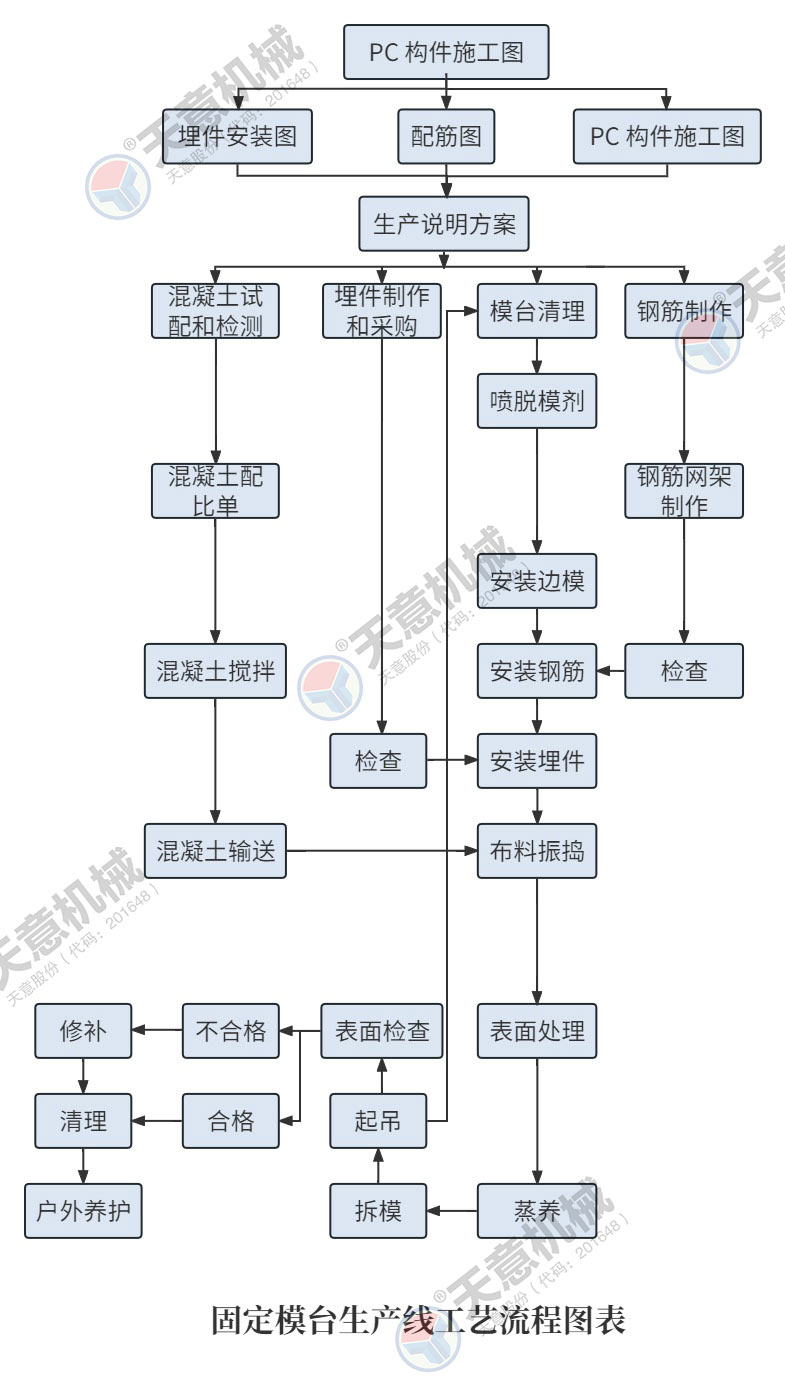 PC固定模臺生產線車間采用模具固定,作業(yè)設備移動的生產方式。